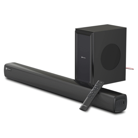 Portronics Pure Sound 101 Soundbar Wired Woofer 120W, 2.1 Channel, HD Sound, Remote Control 120 W Bluetooth Soundbar (Black, Stereo Channel)