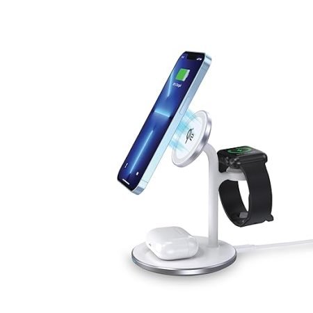 Neopack Magleap Trio 22.5W Wireless Charging Stand for Apple Devices, 3 in 1 Wireless Charger Compatible with iPhone 16/15/14/13/12 Series, Apple Watch/Airpod (Silver)