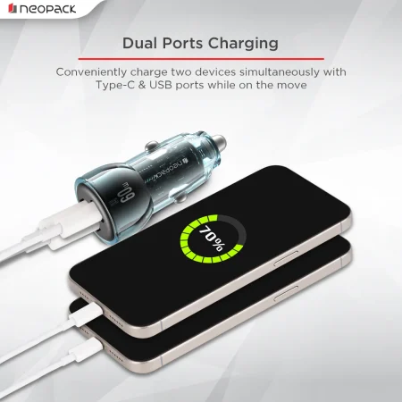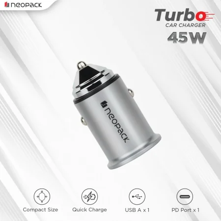 Neopack Power Cube 45W Dual Port USB-C PD Charger with USB-C to C 60W 1.5M Cable for iPhone, iPad, Macbooks and All Other Type-C Enabled Devices (White)
