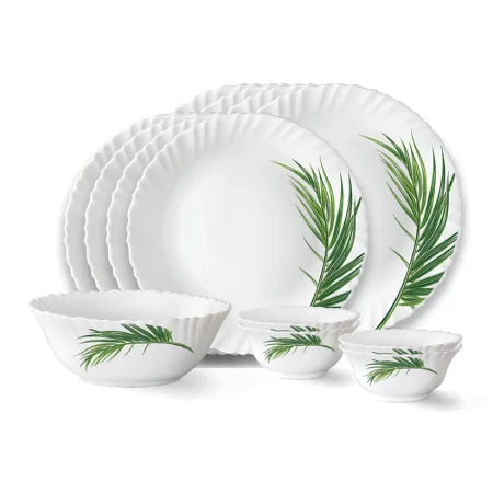 Larah by Borosil Bamboo Leaves Dinner Set, 13 pc