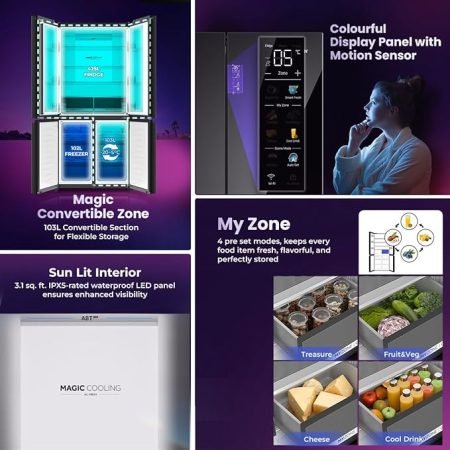 Haier 630 Litres 3 Star 4-Door Side By Side Inverter Refrigerator | Wi-Fi Enabled | Magic Cooling & Deo Fresh | Expert Inverter (“HRB-700KGU1”, Black Glass)