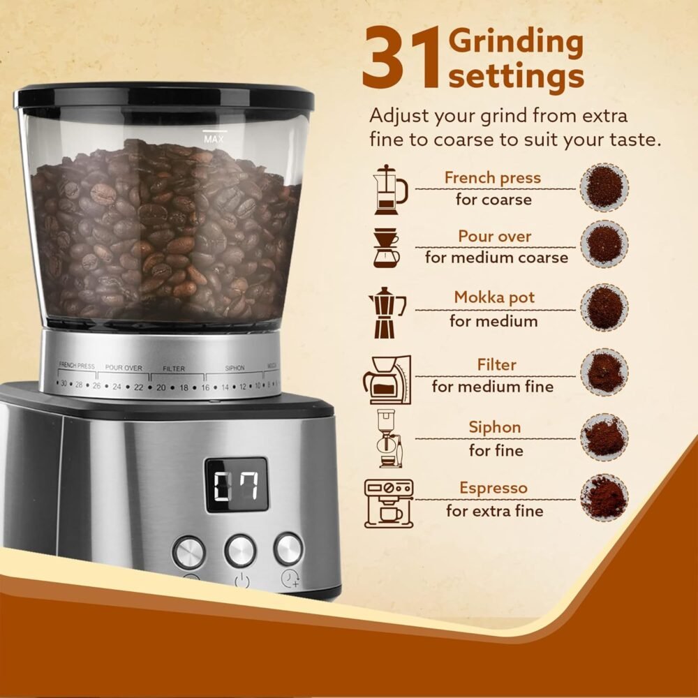 Be the first to review “AGARO Supreme Coffee Grinder With Portafilter Holder Conical Burr Grinder, 15 Cups Coffee Maker (Silver)”