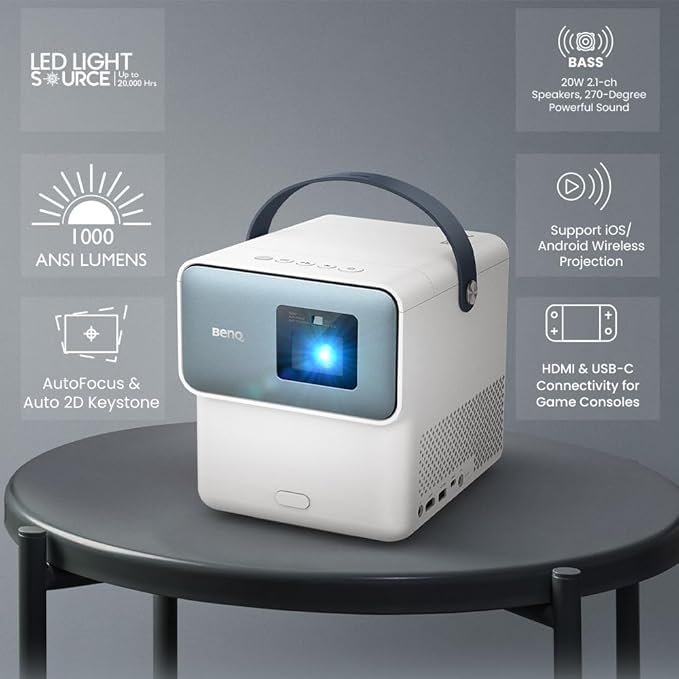 BenQ GP100 (1000 lm / 2 Speaker / Wireless / Remote Controller) Portable 1080p with 4K Support Smart LED Projector (White)