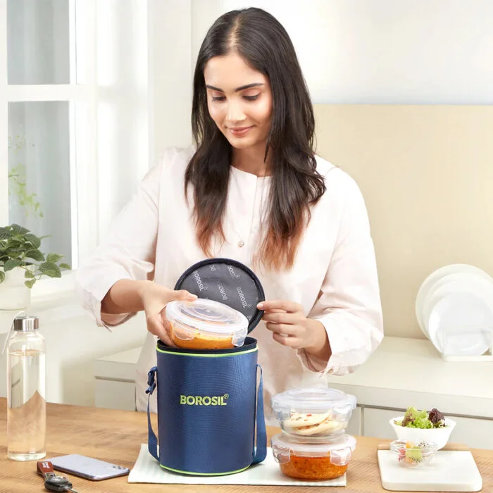 | Product Name | Borosil Blue Glass Lunchbox, Round x 3 (400ml each) |
