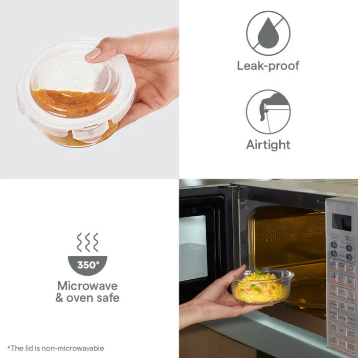 | Material | 100% Borosilicate Glass with Plastic Lids |