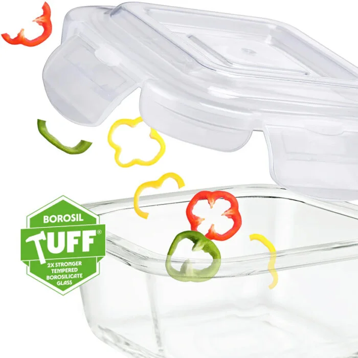 | Material | 100% Borosilicate Glass with Plastic Lids |