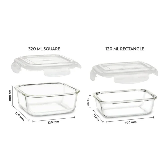| Product Name | Borosil Glass Lunchbox, Square + Rectangular (320ml x 3 + 120ml) |