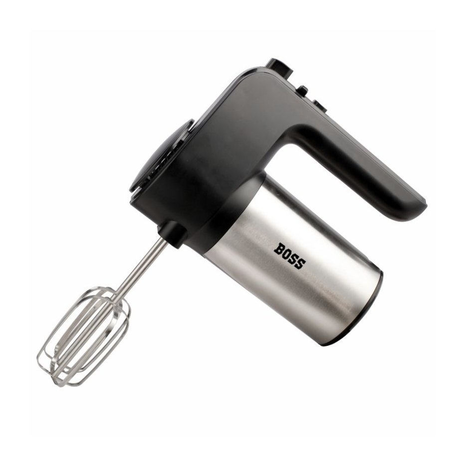 Stylish 300W hand mixer with 6-speed turbo settings, stainless steel dough and beater hooks, designed for effortless whipping, mixing, and kneading.