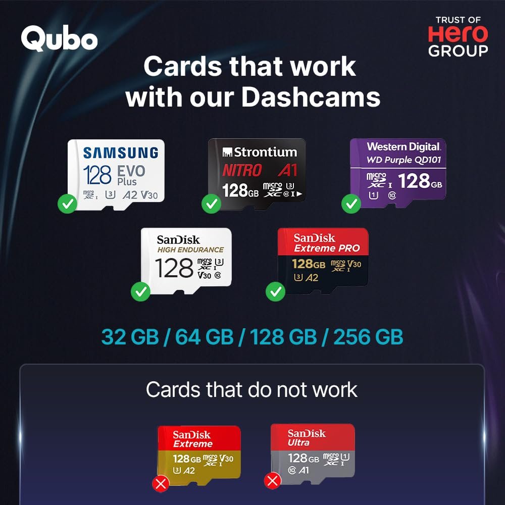 • Qubo Pro App Convenience: Experience ease of control with the Qubo Pro app, turning your dashcam into a personal bodyguard that records everything and allows you to review your drives anytime, day or night.