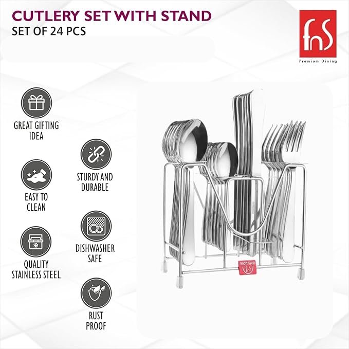 • 24-piece dining cutlery set with stand
