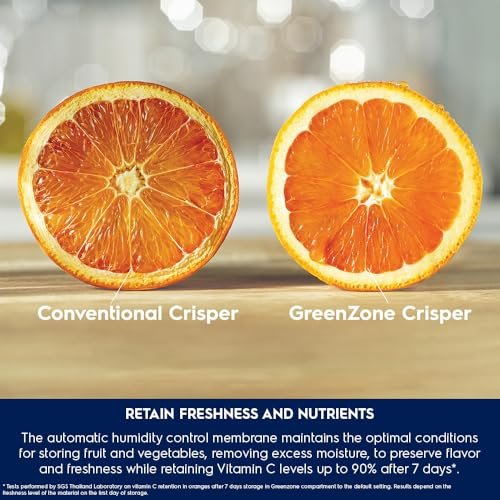 • Retain Freshness and Nutrients: The GreenZone crisper compartment keeps fruit and vegetables fresh and bursting with flavour, while retaining vitamin C levels up to 90% after 7 days*.