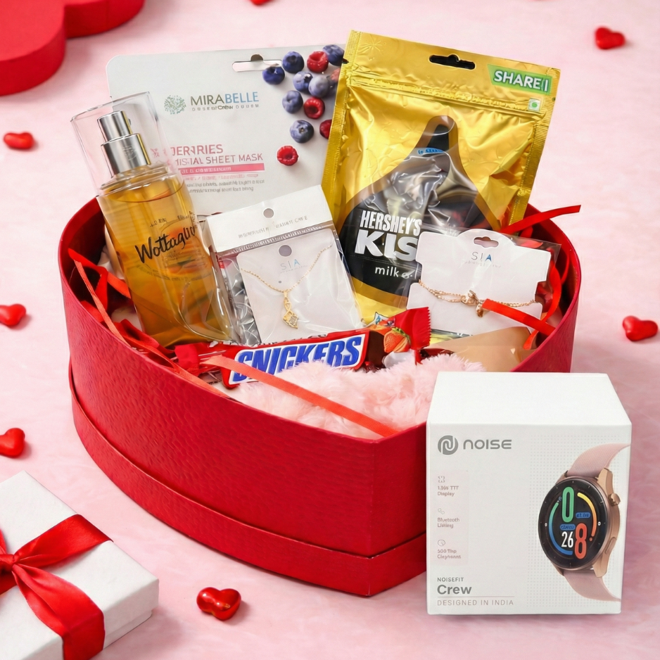Each Elegance in Time – Premium Smart Hamper – Luxe Valentine Hamper for Her is thoughtfully curated with a perfect mix of romance, indulgence, elegance, and modern lifestyle essentials.