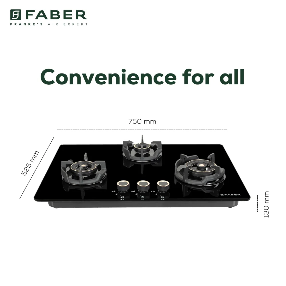 | Burner Type | 1 x 3.0 KW Triple Ring Big Burner, 1 x 2.8 KW Mini Triple Ring Burner, 1 x 1.7 KW Small Burner |