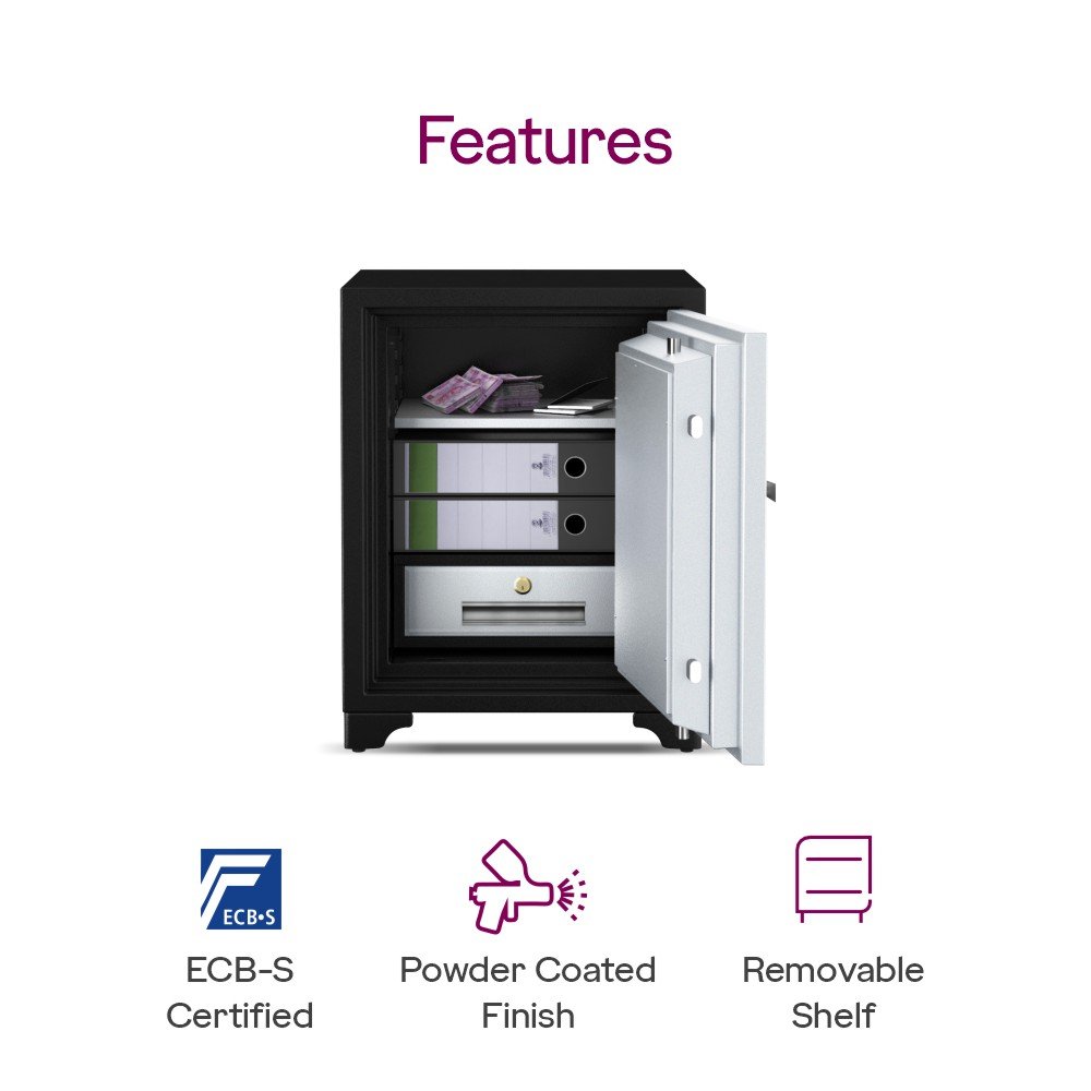 This 89-litre digital safe is engineered for maximum security with advanced alarm intelligence, fire resistance for 120 minutes, and a durable double-wall build. Equipped with a digital locking mechanism, mechanical override, and non-volatile memory, it’s ideal for safeguarding valuables in both residential and commercial settings.