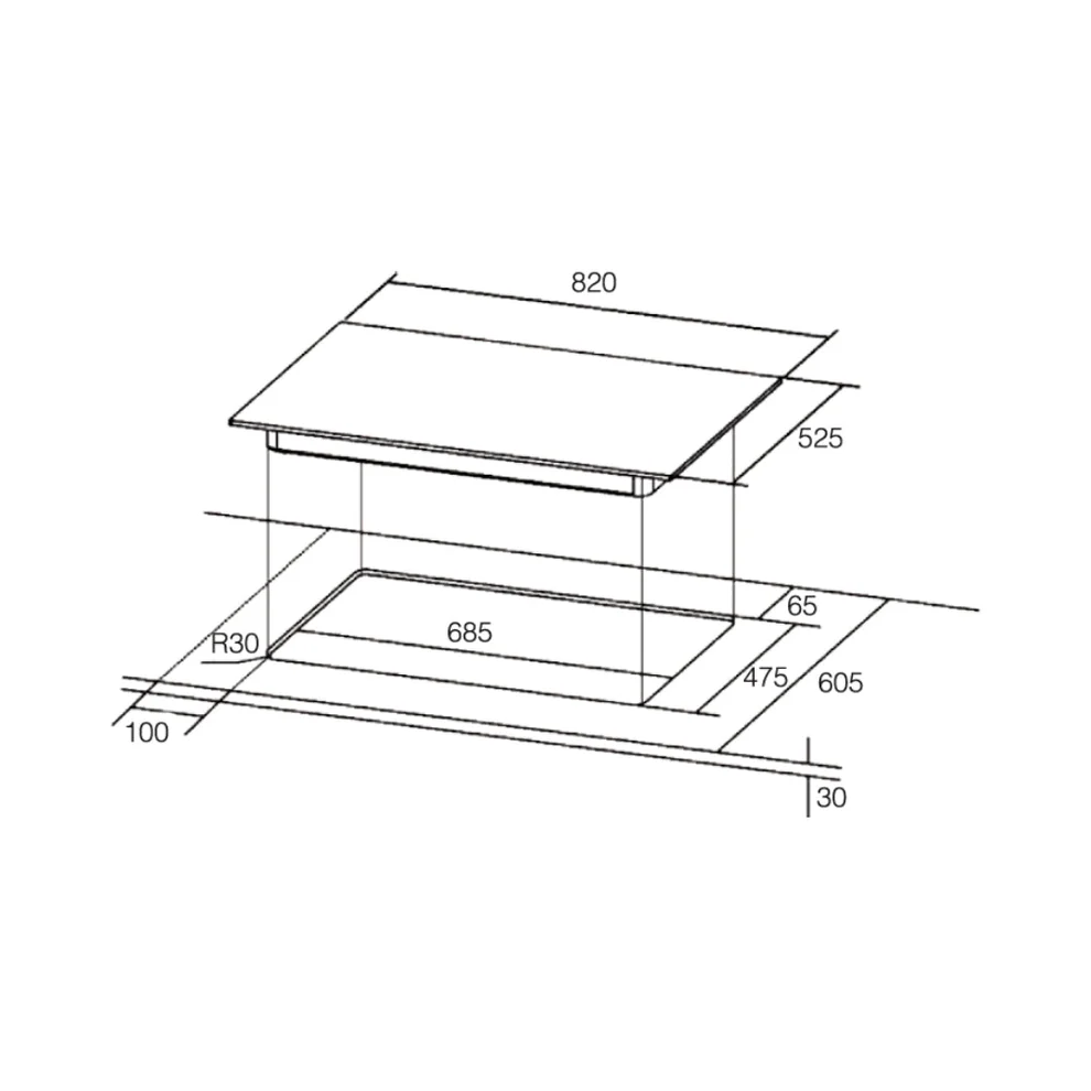 Cut-Out Dimensions (W × D) 555 × 475 mm