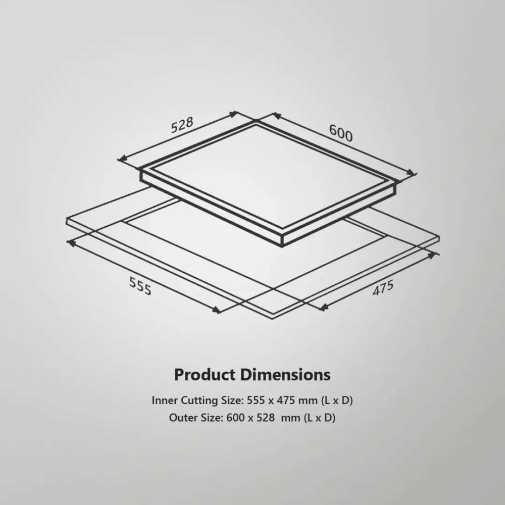 | Built-in Gas Hob Specifications – 60cm, Black Tempered Glass | |