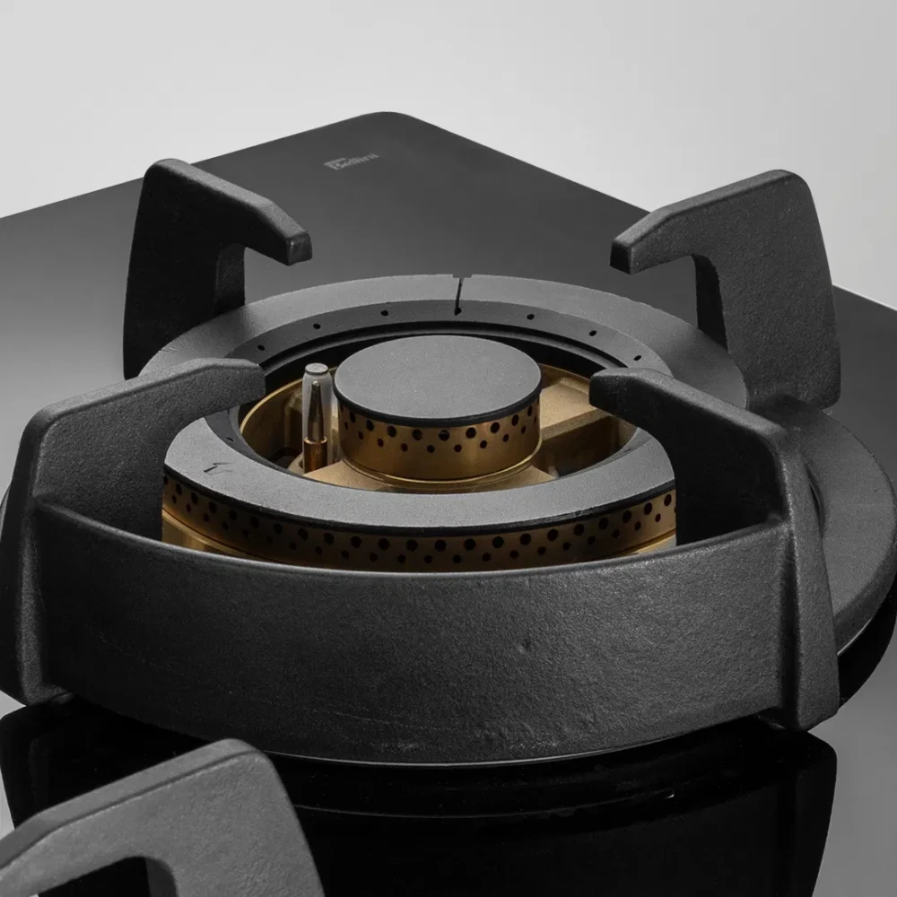 • Brass Burner Caps Coated in Black + Brass Flame Spreader