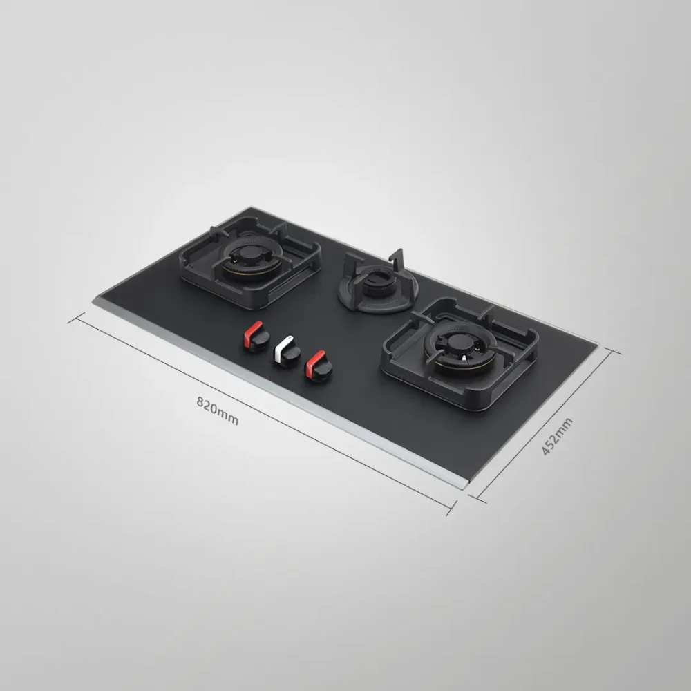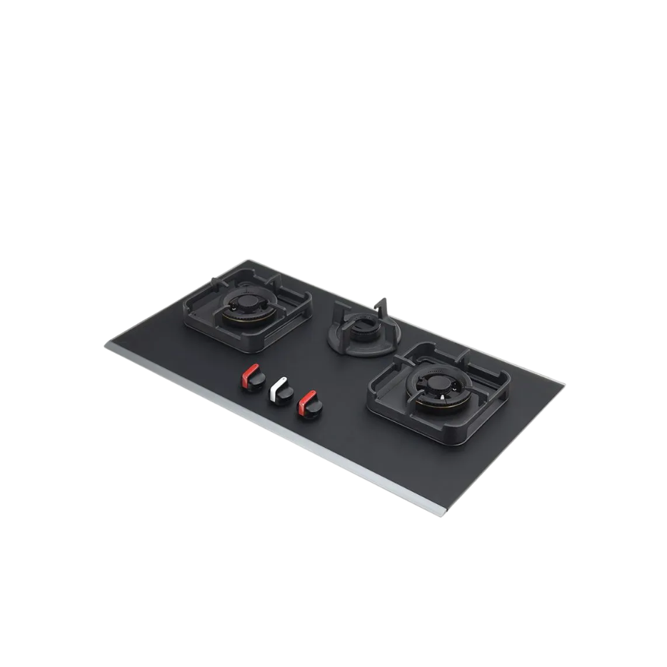 | Highlight | High Efficiency Full Brass Burners, Full Flame Failure Device, Heavy Duty Cast Iron Pan Support with Integrated Flame Protector, Premium Frosted Rock Glass Finish with Decorative SS Moulded Front Strip, Dual Color Designer Metal Knobs |