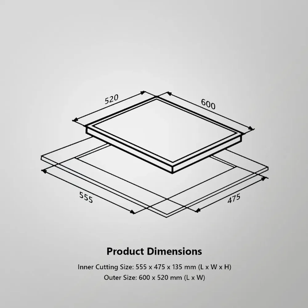 | Built-in Gas Hob Specifications – 60cm (4 Burners) | |