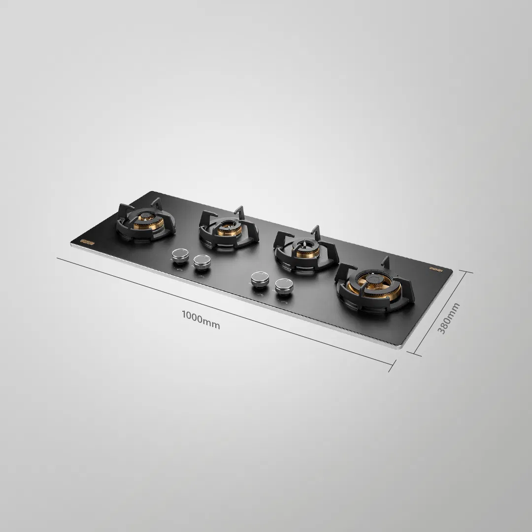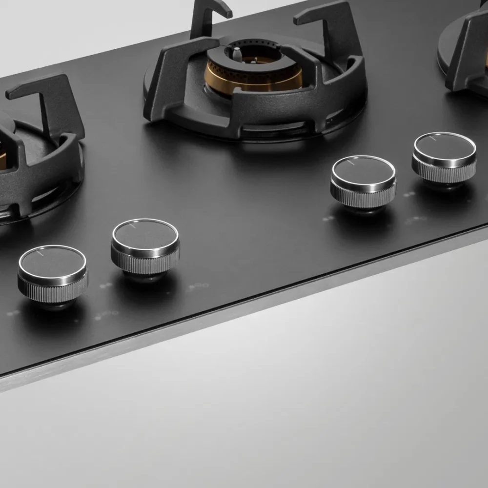 | Highlight | High Efficiency Full Brass Burners, Full Flame Failure Device, Heavy Duty Cast Iron Pan Support with Integrated Flame Protector, Premium Frosted Black Glass with Decorative SS Moulded Strip, Ergonomic Designer Metal Knobs |