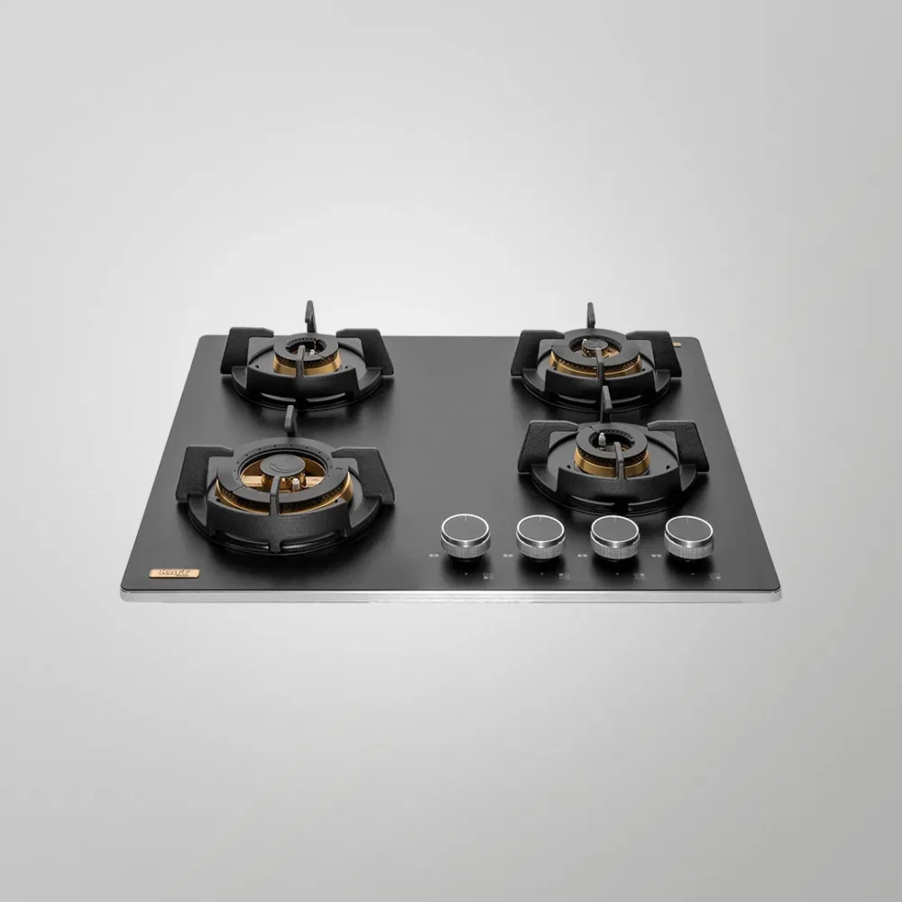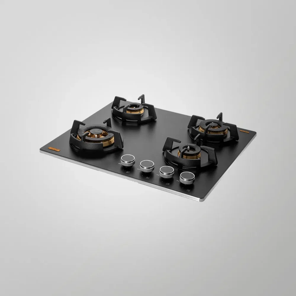 | Highlight | High Efficiency Full Brass Burners, Full Flame Failure Device, Heavy Duty Cast Iron Pan Support with Integrated Flame Protector, Premium Frosted Black Glass with Decorative SS Strip, Ergonomic Designer Metal Knobs |
