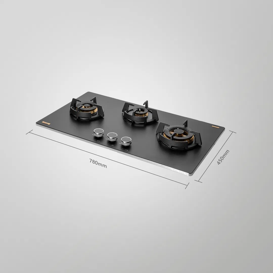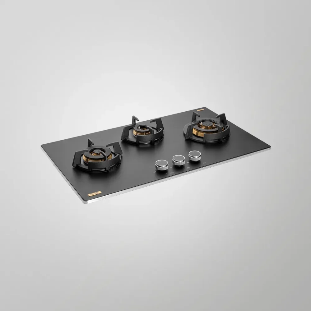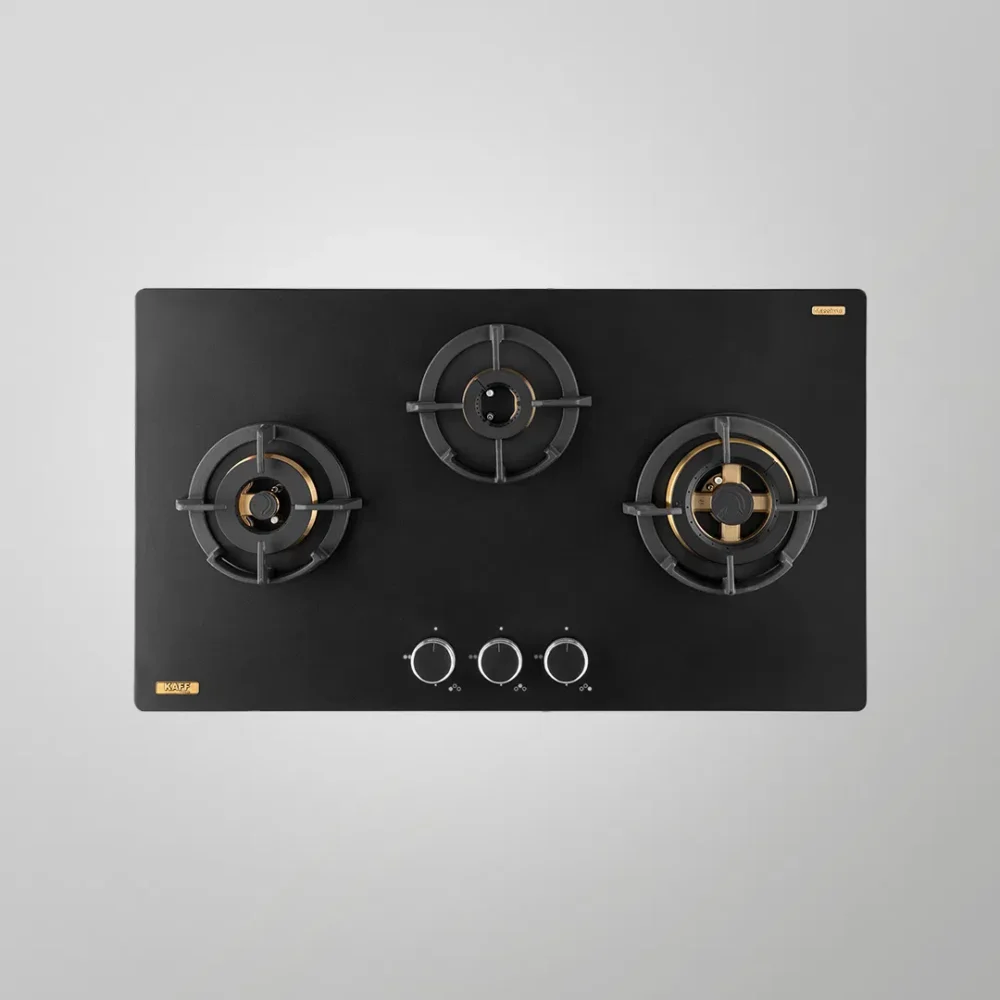 | Highlight | High Efficiency Full Brass Burners, Full Flame Failure Device, Heavy Duty Cast Iron Pan Support with Integrated Flame Protector, Premium Frosted Black Glass with Decorative SS Strip, Ergonomic Designer Metal Knobs |