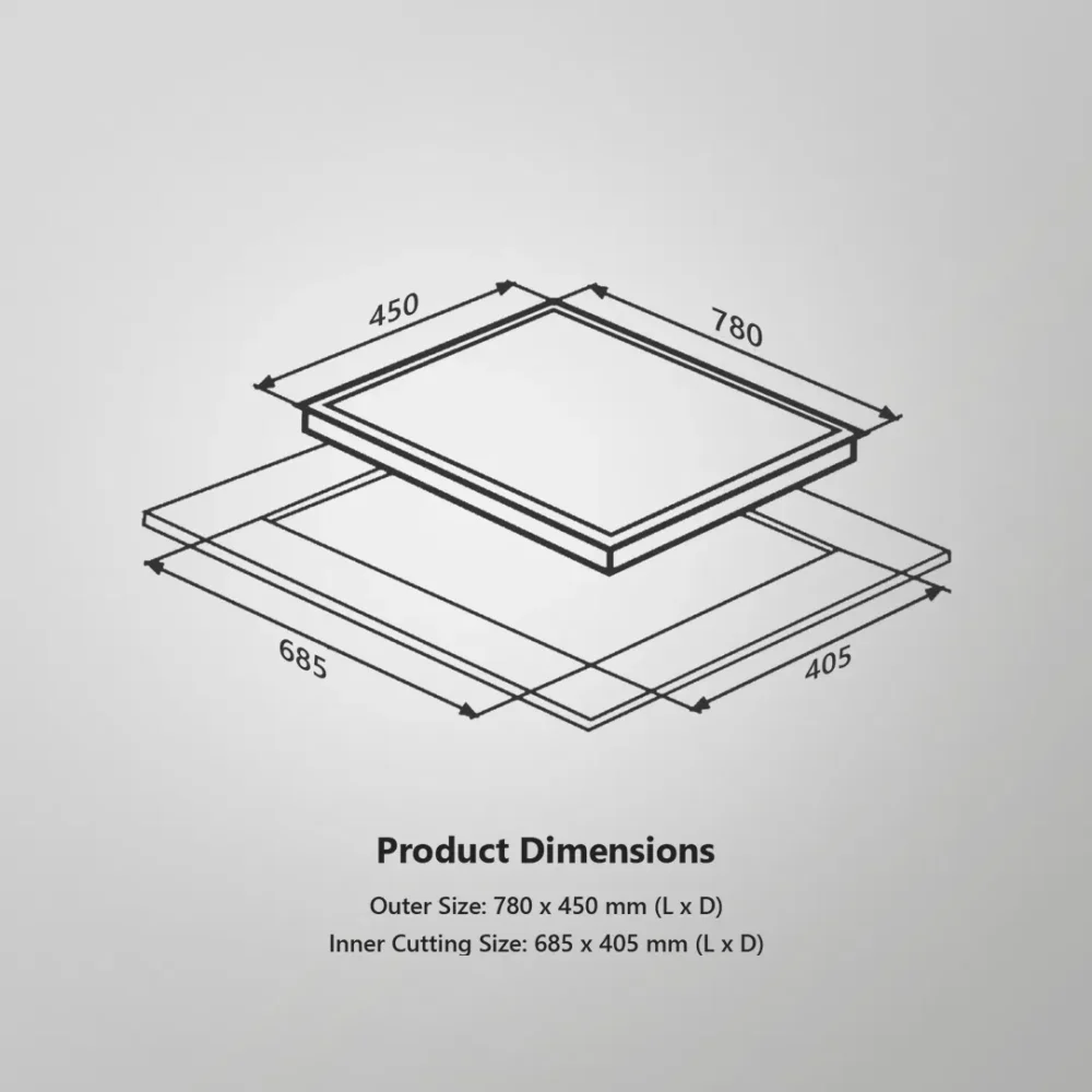 | Built-in Gas Hob Specifications – 78cm, Frosted Black Glass | |