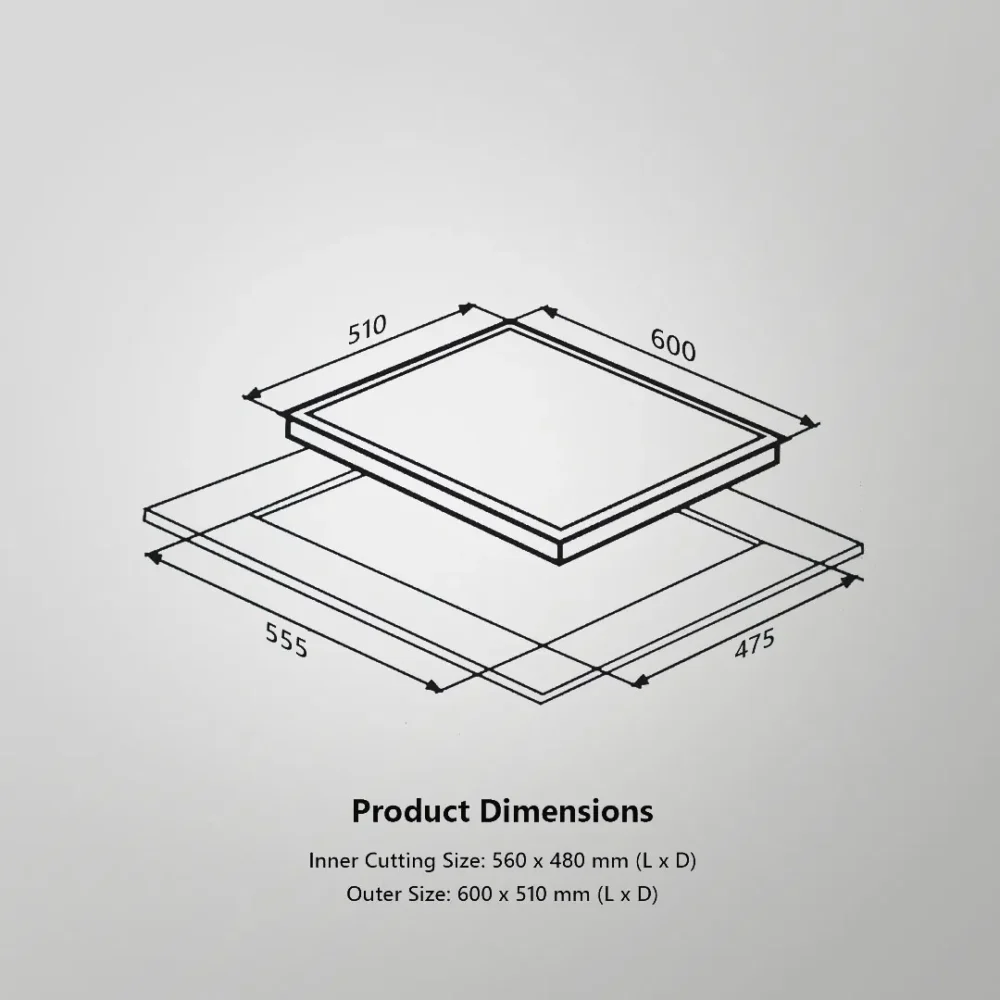 | Built-in Gas Hob Specifications – 60cm (4 Burners) | |