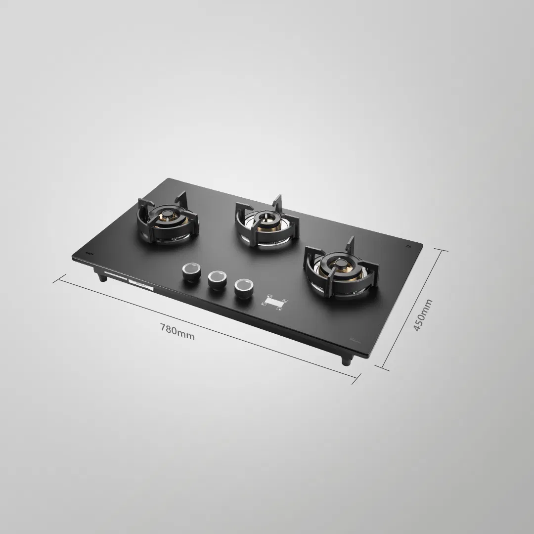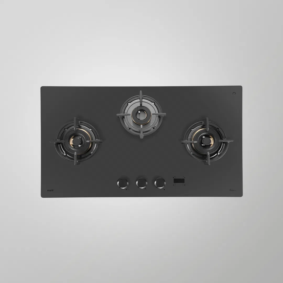 | Highlight | High Efficiency Full Brass Burners, Full Flame Failure Device, Digital Timer, Heavy Duty Cast Iron Pan Support with integrated flame protector, Premium Frosted Black Glass With Decorative Black Strip, Ergonomic Designer Metal Knobs |