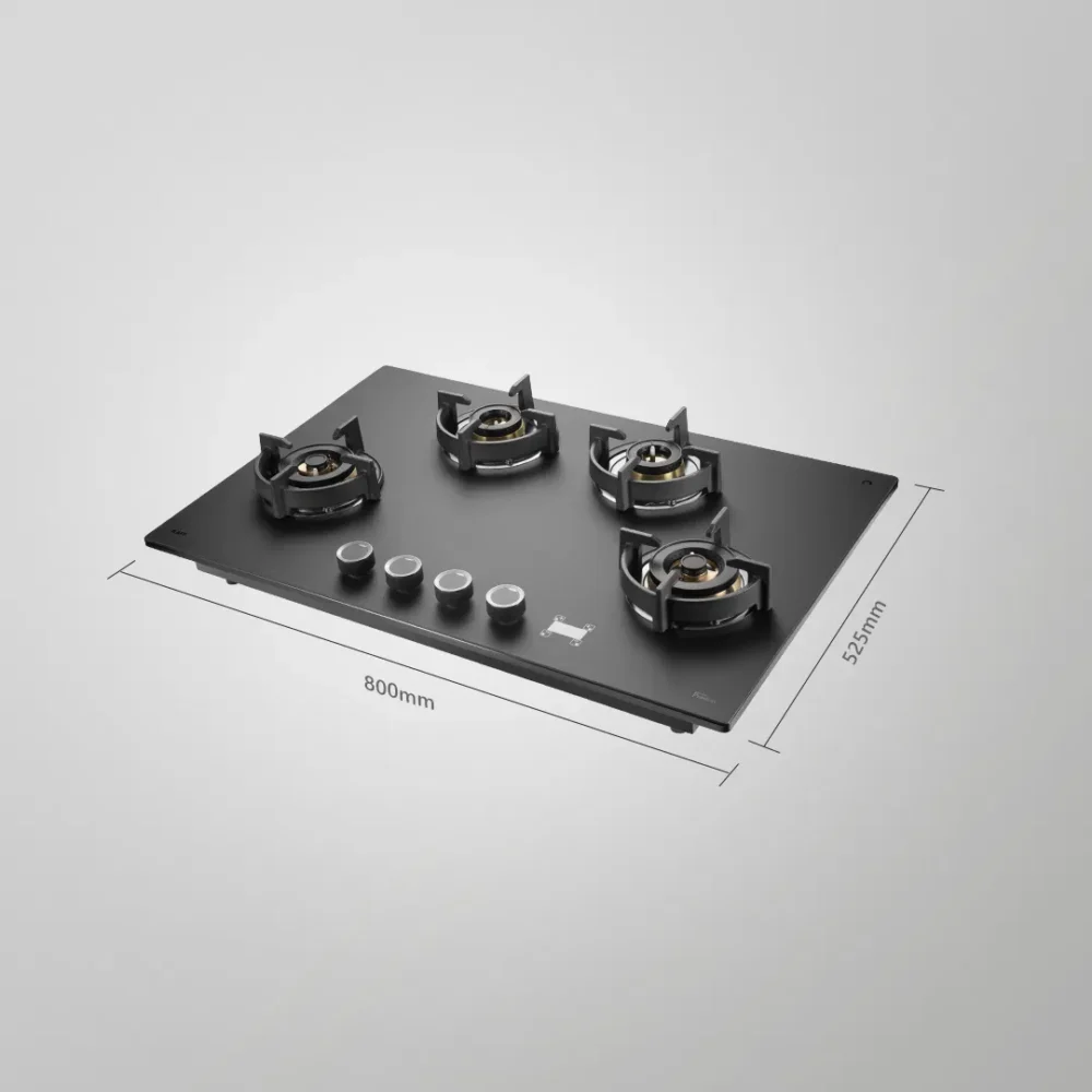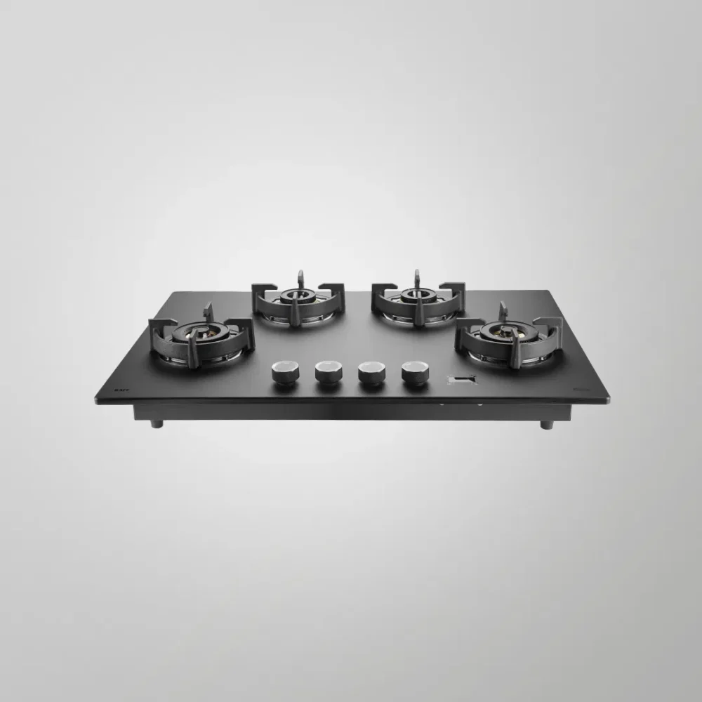 | Highlight | High Efficiency Full Brass Burners, Full Flame Failure Device, Digital Timer, Heavy Duty Cast Iron Pan Support with Integrated Flame Protector, Premium Frosted Black Glass with Decorative Black Strip, Ergonomic Designer Metal Knobs |