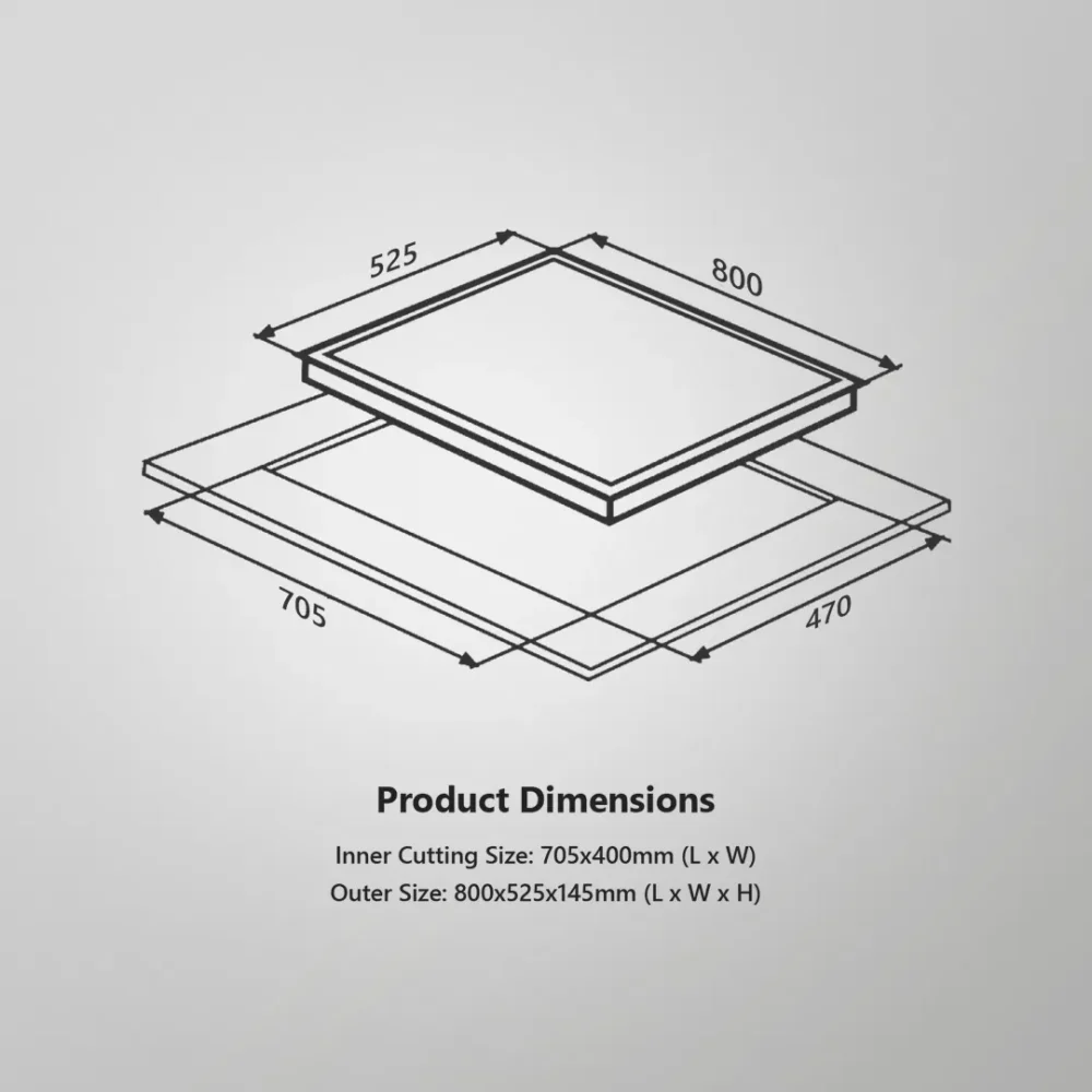 | Built-in Gas Hob Specifications – 80cm, Matte Black Glass with Digital Timer | |
