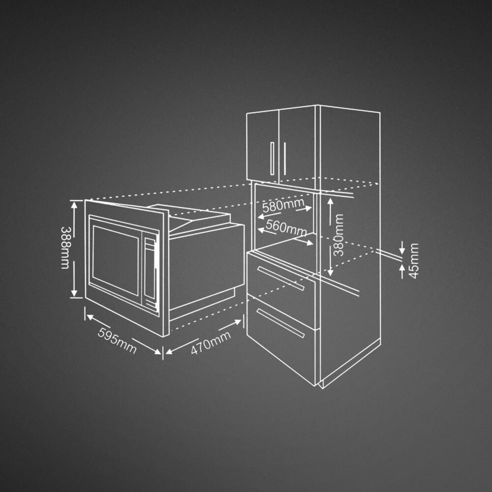 KAFF KMW8A-BLK 25L Built-in Microwave Oven with Convection