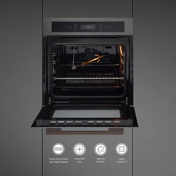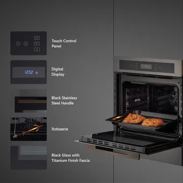 Built-in Convection + Grill Oven with 12 Cooking Modes, Titanium Finish Fascia, and Advanced 3D Hot Air Technology.