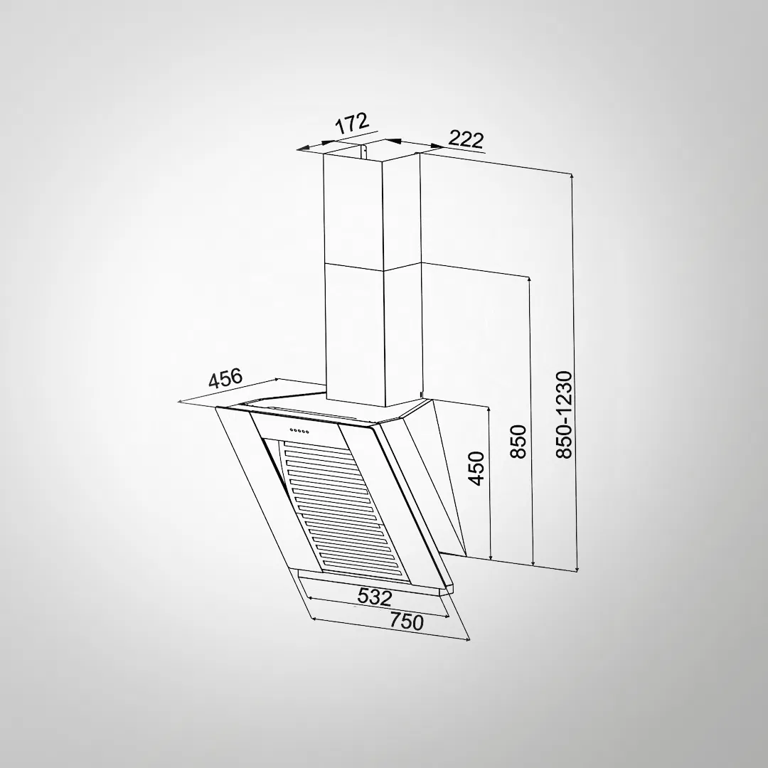 | Wall Mounted Chimney – 75cm (Uniquely Designed, Stainless Steel with Black/Grey Glass) | |