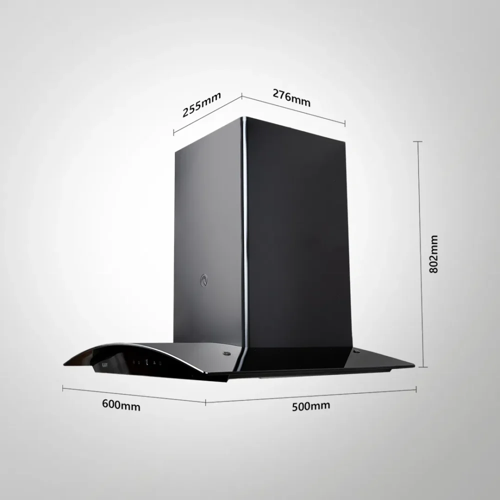 Wall Mounted Chimney – 60/90cm (Curved Glass, Matt Black, Auto Clean)
