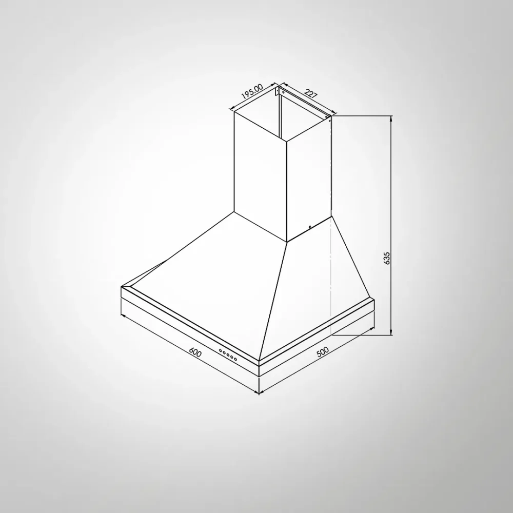| Wall Mounted Chimney Specifications – 60cm (Pyramid, Filterless, Auto Clean) | |