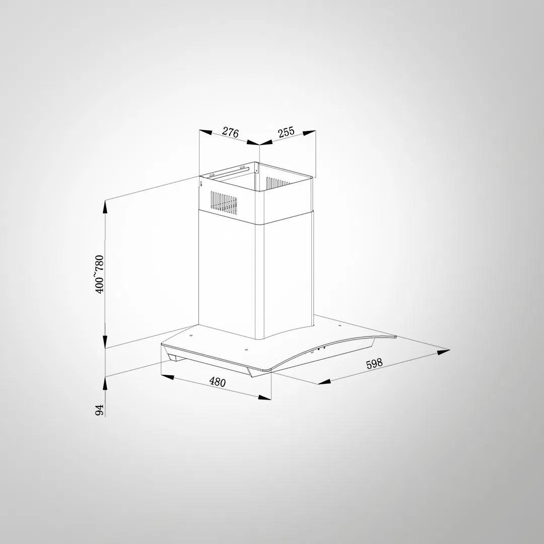 | Wall Mounted Chimney Specifications – 60cm (Curved Glass Design) | |