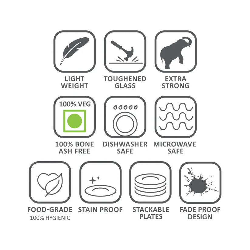 | Included Components | 4 Full Plates, 4 Quarter Plates, 4 Veg Bowls |