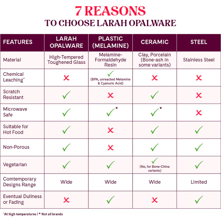 • 100% vegetarian as it is completely bone ash free, unlike bone china