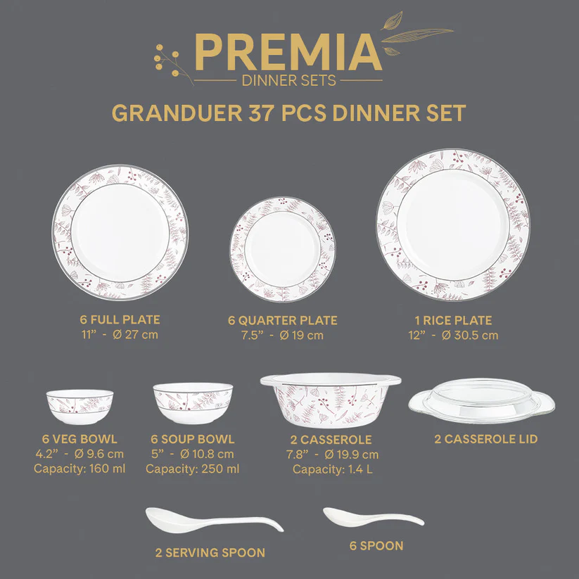 | Product Name | Larah By Borosil Grandeur Dinner Set (37 pc Set: Serves 6) |