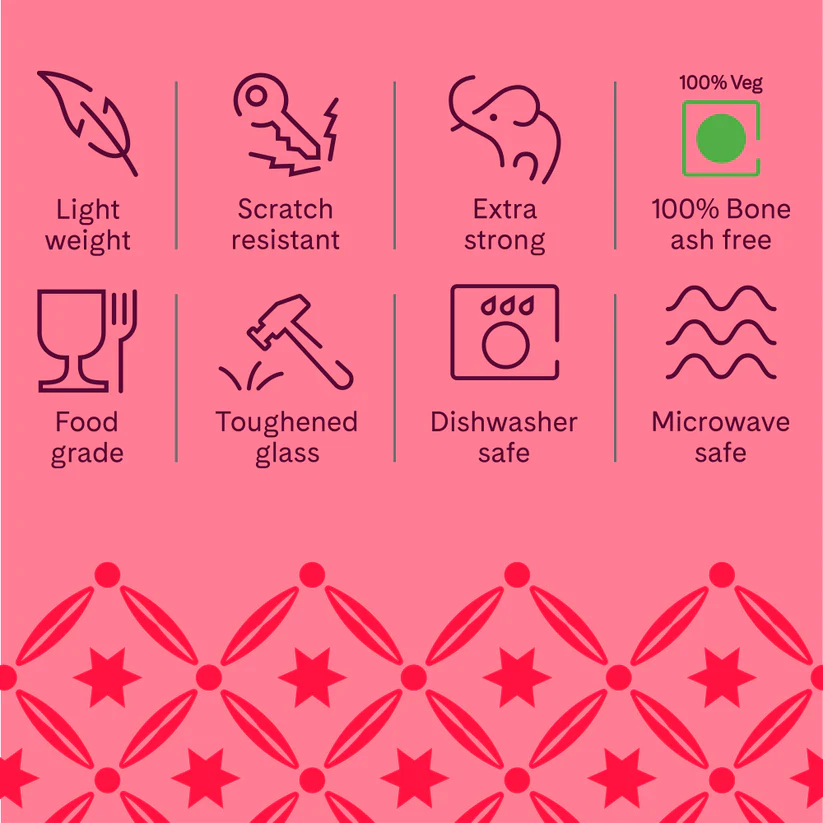 • 100% vegetarian as it is completely bone ash free, unlike bone china
