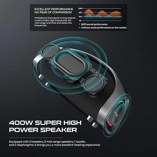 • Massive 400W sound output for karaoke, performances, and large gatherings