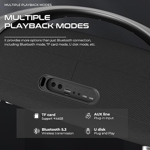 Connectivity Options Bluetooth, AUX, USB, TF Card, Guitar Input, Wireless Microphone