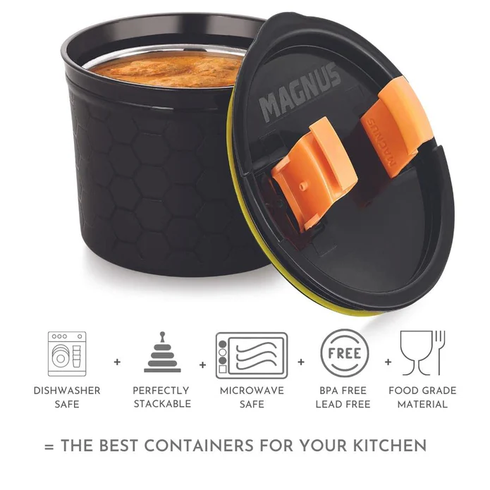 Be the first to review “Magnus Microwave Safe Stainless-Steel Steam Lock Kitchen Food Storage Containers with Lid (Set of 2) 450ML | Black”