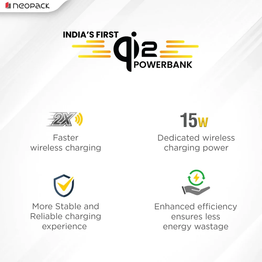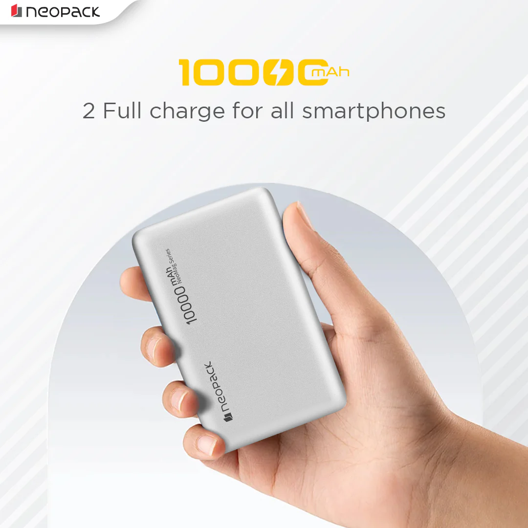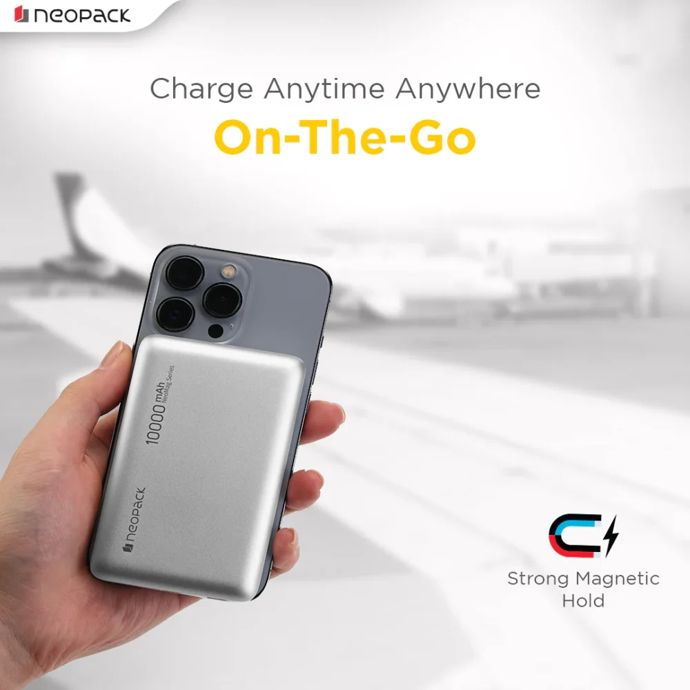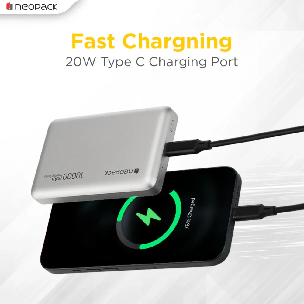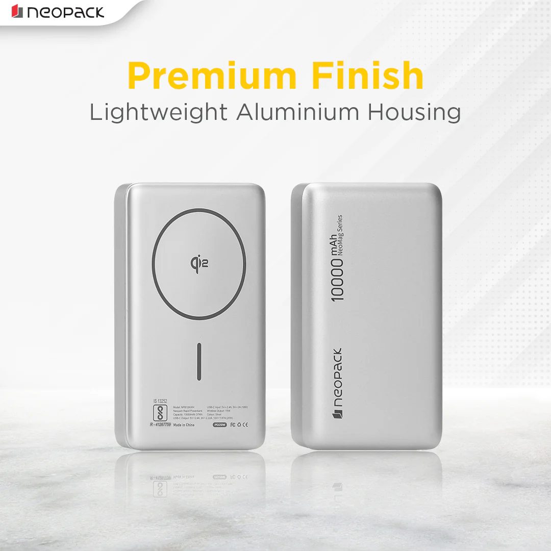 Neopack Rapid Qi2 Fast Charging Magsafe Power Bank 10000 mAH with Wireless Charging 15W & Type C 20W (Silver)