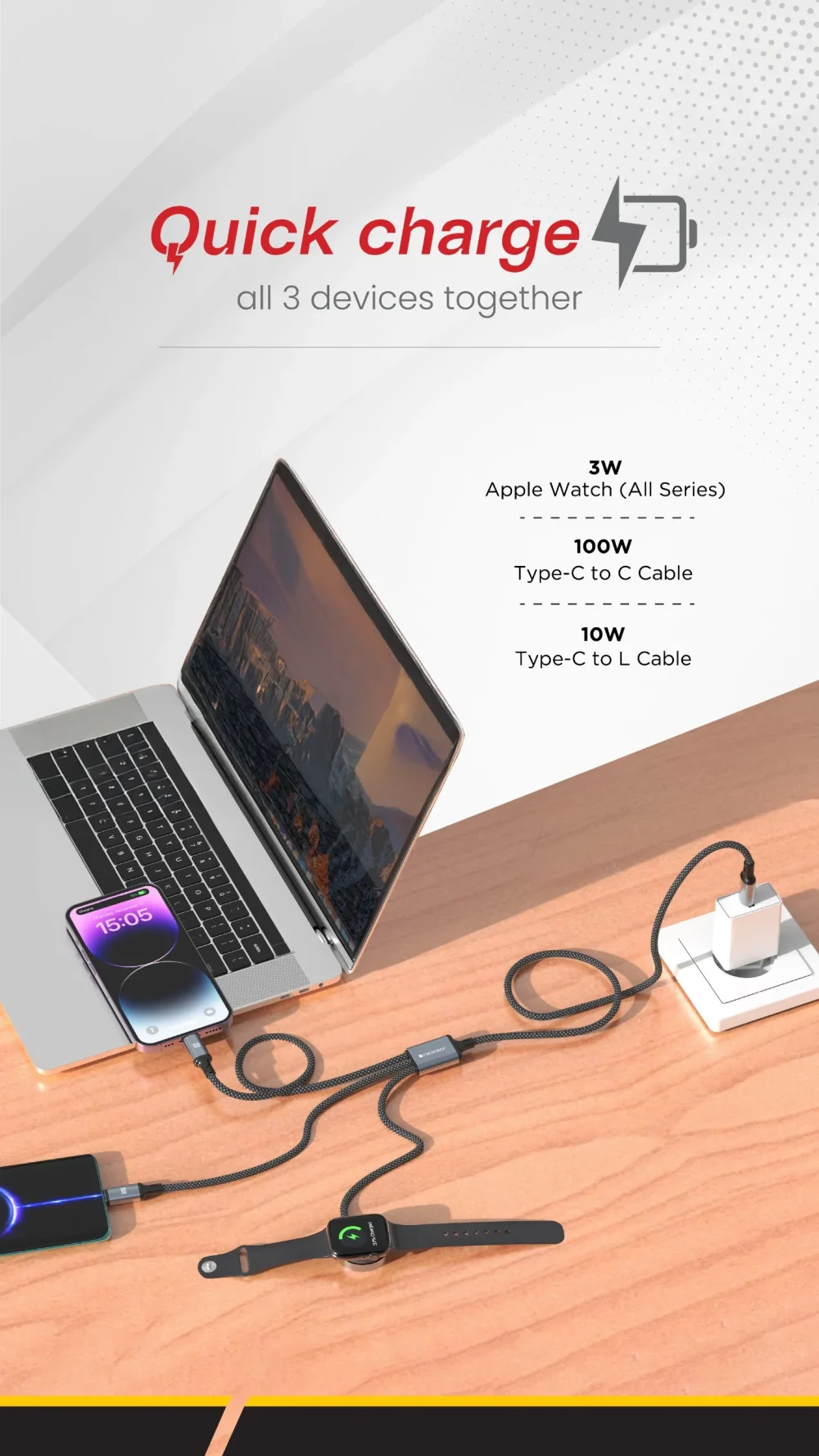 | Power Output | 3W (Apple Watch), 100W (USB-C to USB-C), 10W (USB-C to Lightning) |