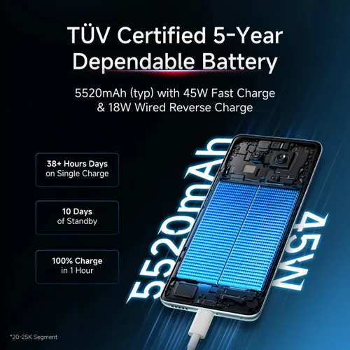 | Battery | 5520 mAh with 45 W Turbo Charging |