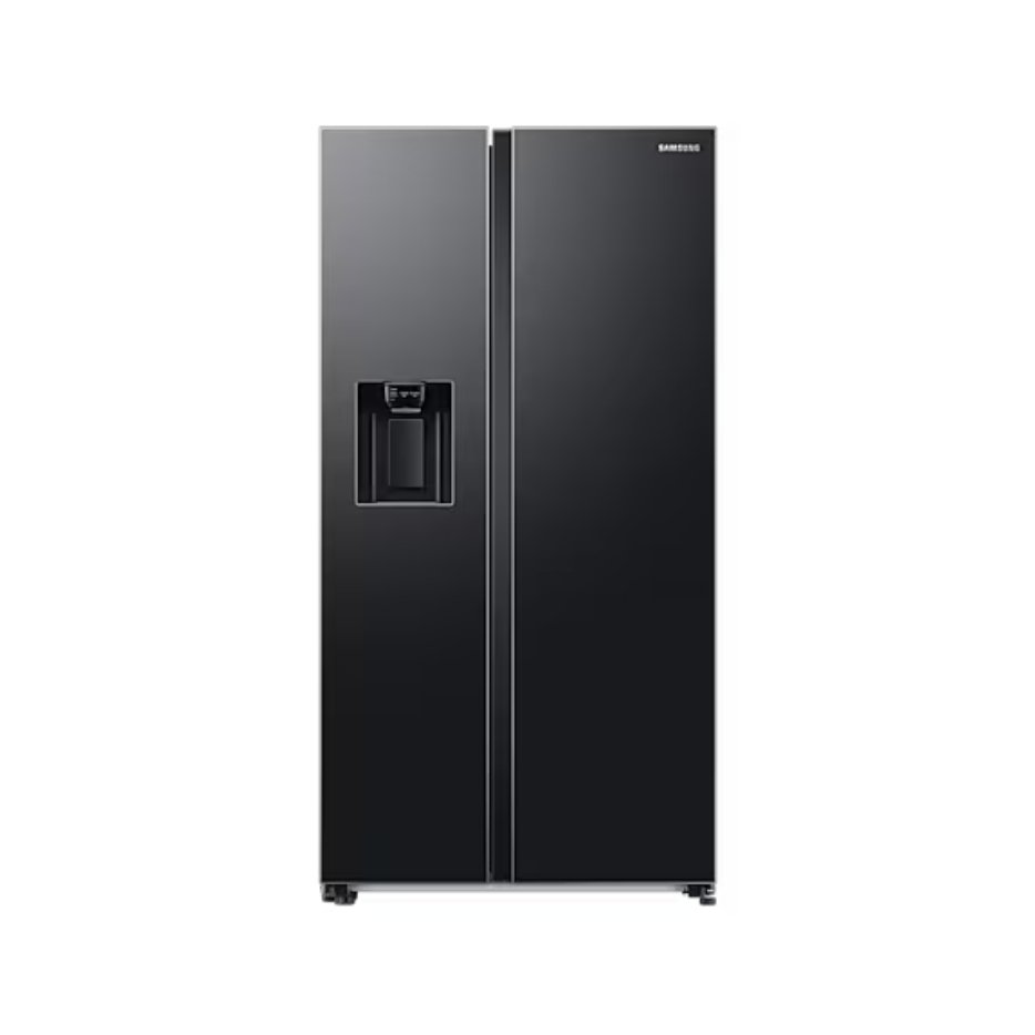 Spacious side-by-side refrigerator with Twin Cooling Plus™, Dual Ice Maker, Non-Plumbed Water Dispenser, and Smart Wi-Fi functionality in a sleek Black Matt finish.
