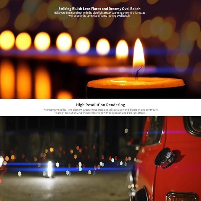 • 1.33x anamorphic squeeze factor delivers 2.4:1 widescreen cinematic visuals.