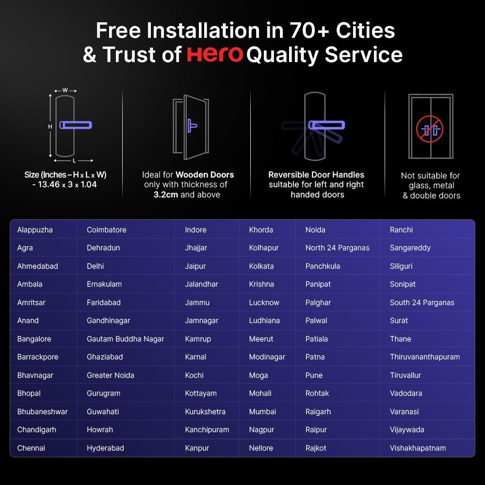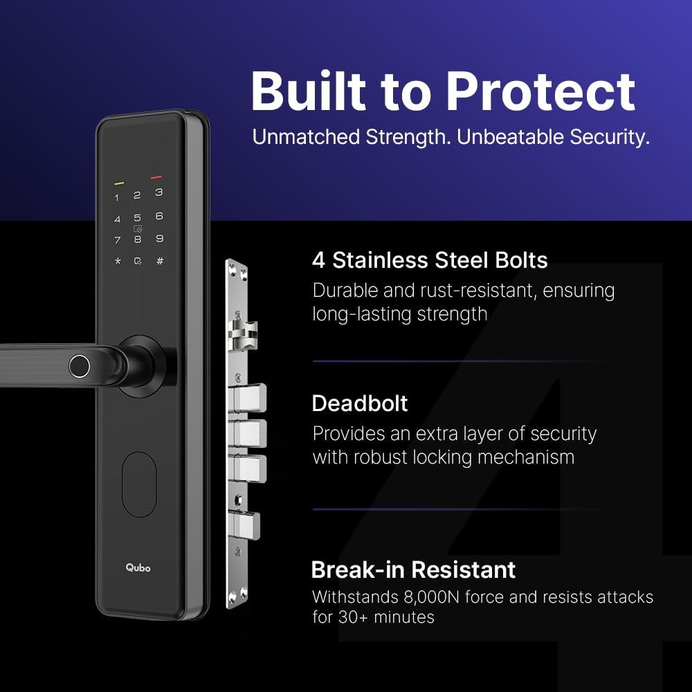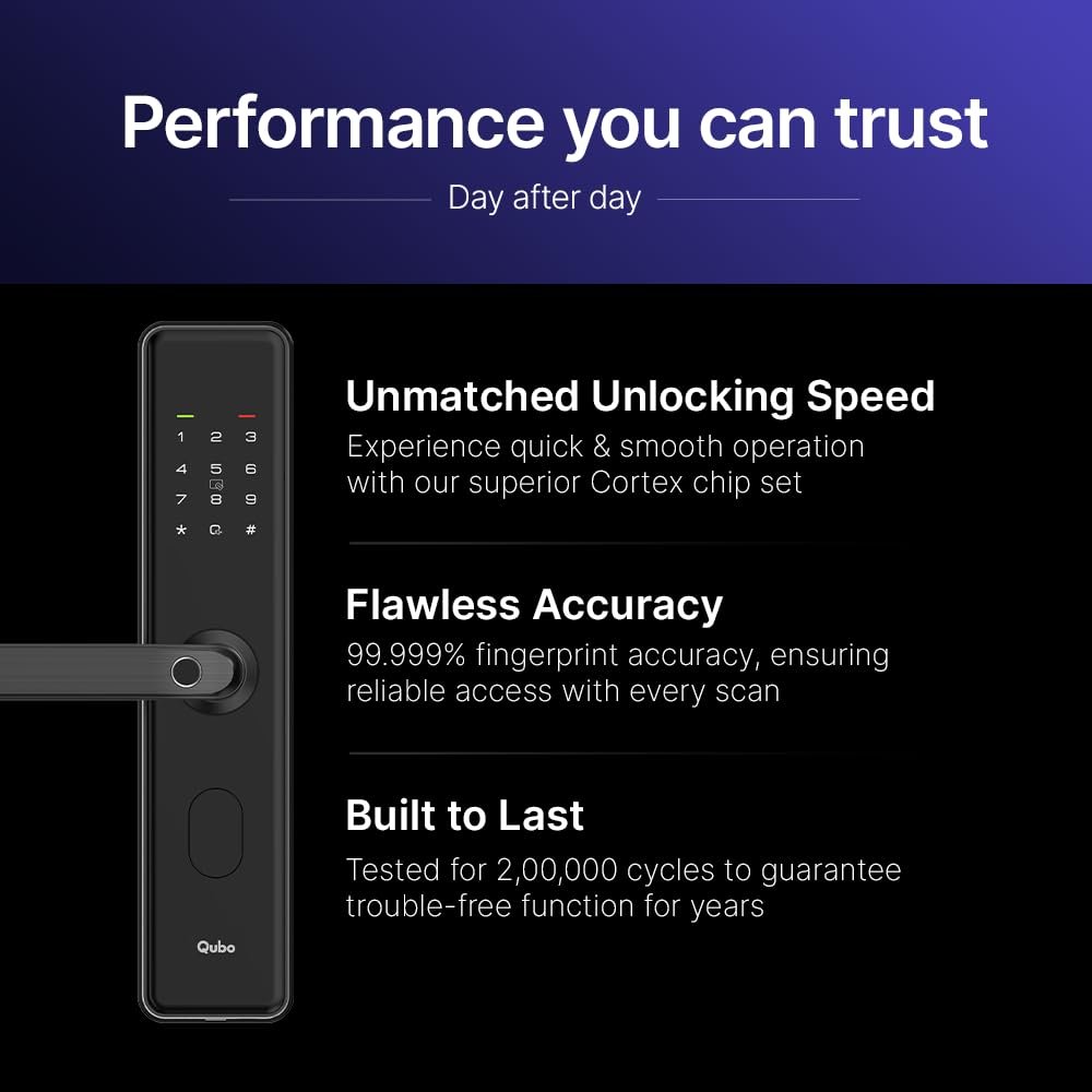 | Special Features | Fingerprint, Pincode Unlock, Mobile App Unlock, Card Reader, Alarm, Child Lock, Rechargeable, Fob Unlock, OTP Access, Key Unlock, Durable |